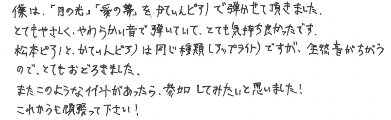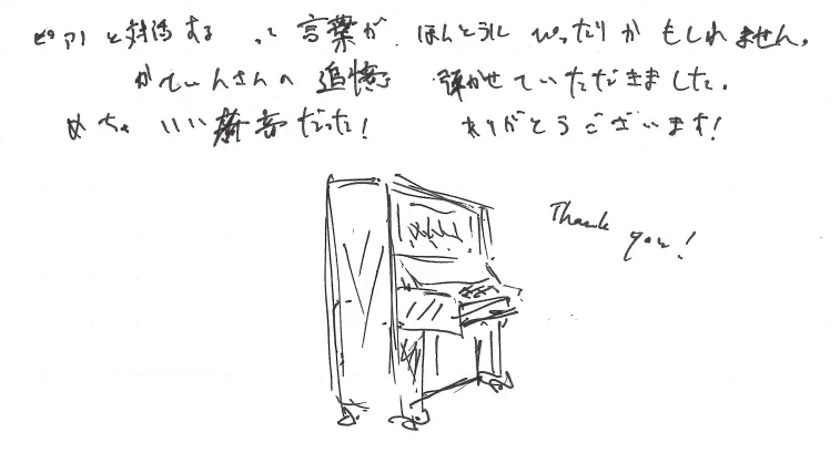 時代も音色も異なる、2つのピアノが出会うこの機会が、子どもたちにとって忘れられない体験となることを願って――