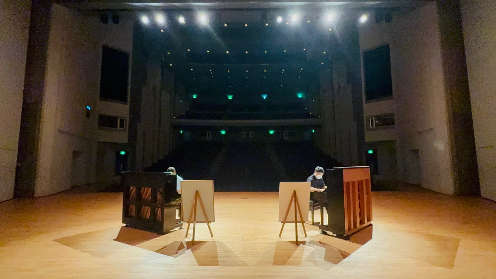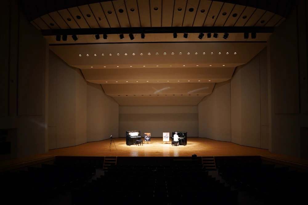 ステージには、かてぃんピアノと松本ピアノの2台を設置。照明は落とし、ピアノだけにスポットライトを当てることで、まるで自分だけのリサイタルのような特別な空間を演出しました。