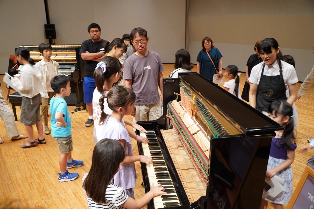 参加者は一人20分、完全貸切のホールで思い思いにピアノと向き合いました。「憧れのかてぃんピアノを弾けて夢のよう」「松本ピアノは歴史を感じる音で、弾き比べが面白かった」といった声が多く寄せられ、4日間で延べ58組142名が参加。中でもとても嬉しかったのは、演奏者のうち10代以下の方が約6割を占めていたことです。まさに角野さんの願いどおり、子どもたちが憧れのピアノに触れ、音楽の楽しさを全身で感じる時間となりました。