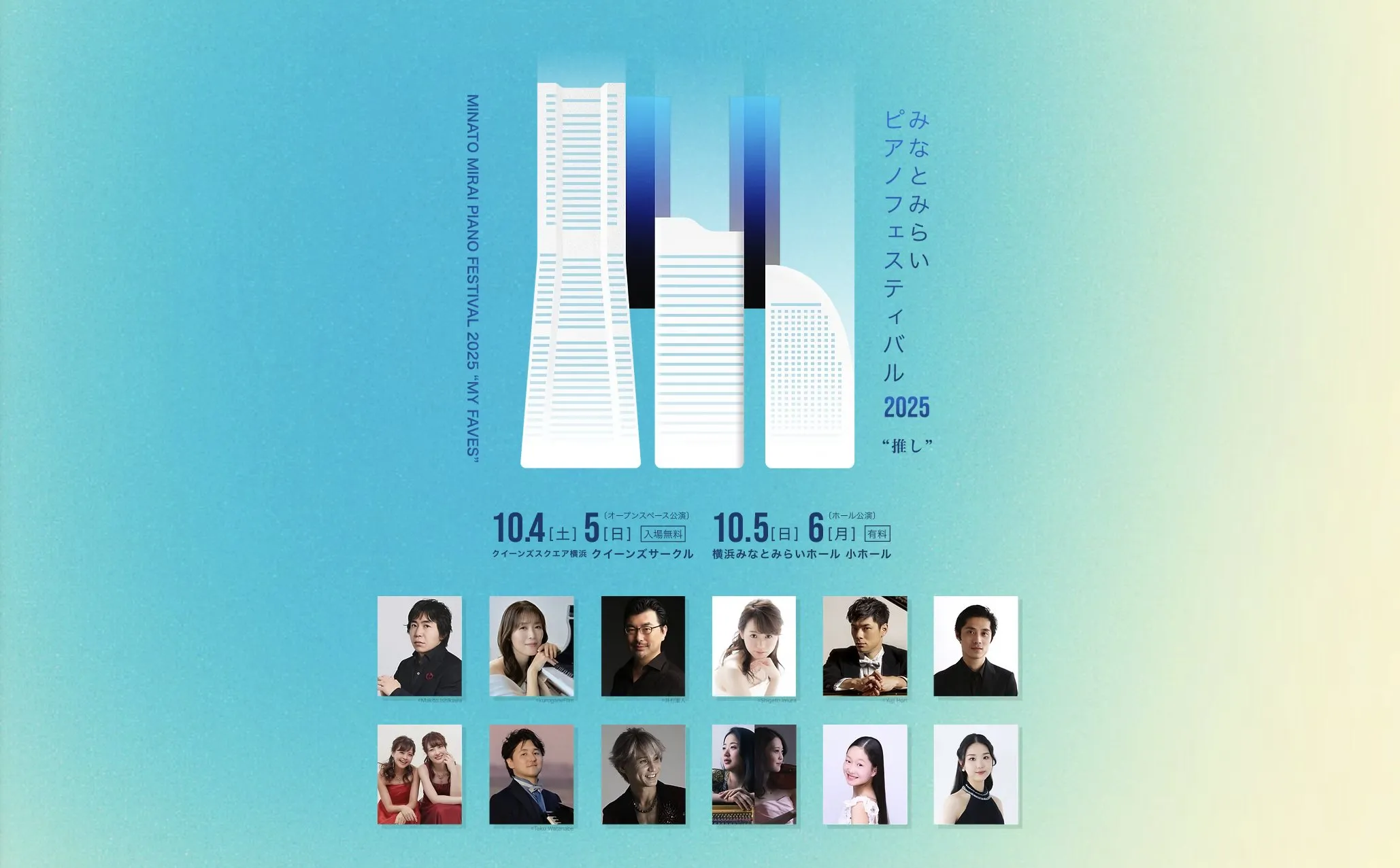 後援:一般社団法人 横浜みなとみらい21、Music Port YOKOAHAMA委員会、一般社団法人 横浜ライブエンターテインメント協議会、横浜市 にぎわいスポーツ文化局、一般社団法人 全日本ピアノ指導者協会(ピティナ)