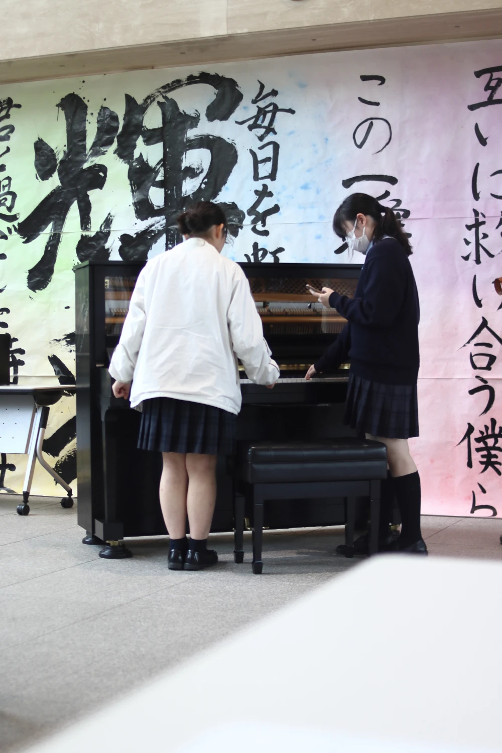 東京都品川区にある朋優学院は、全校生徒約1300人で、自由な校風を売りとしている高校です。本校では約2年前、在校生2人が中心となり新たな行事として『若葉音楽祭』を立ち上げ、現在も彼らの意思を受け継ぎ不定期で音楽祭の企画、開催を行っています。今年度も音楽祭の一環として、昨年に引き続きかてぃんピアノを設置させていただきました。