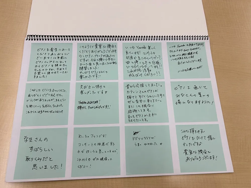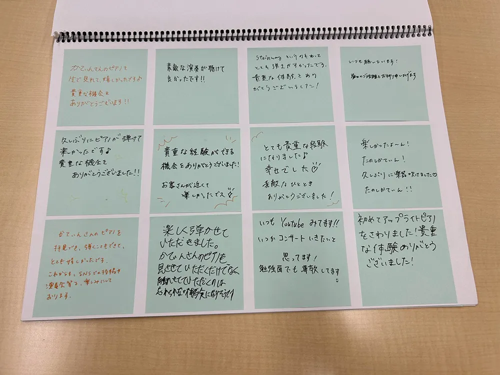 - 今までピアノに触れる機会がほとんどなかったので、少しですが触れることが出来て嬉しかったです^^素敵な音色に癒されました!このような機会をありがとうございました!